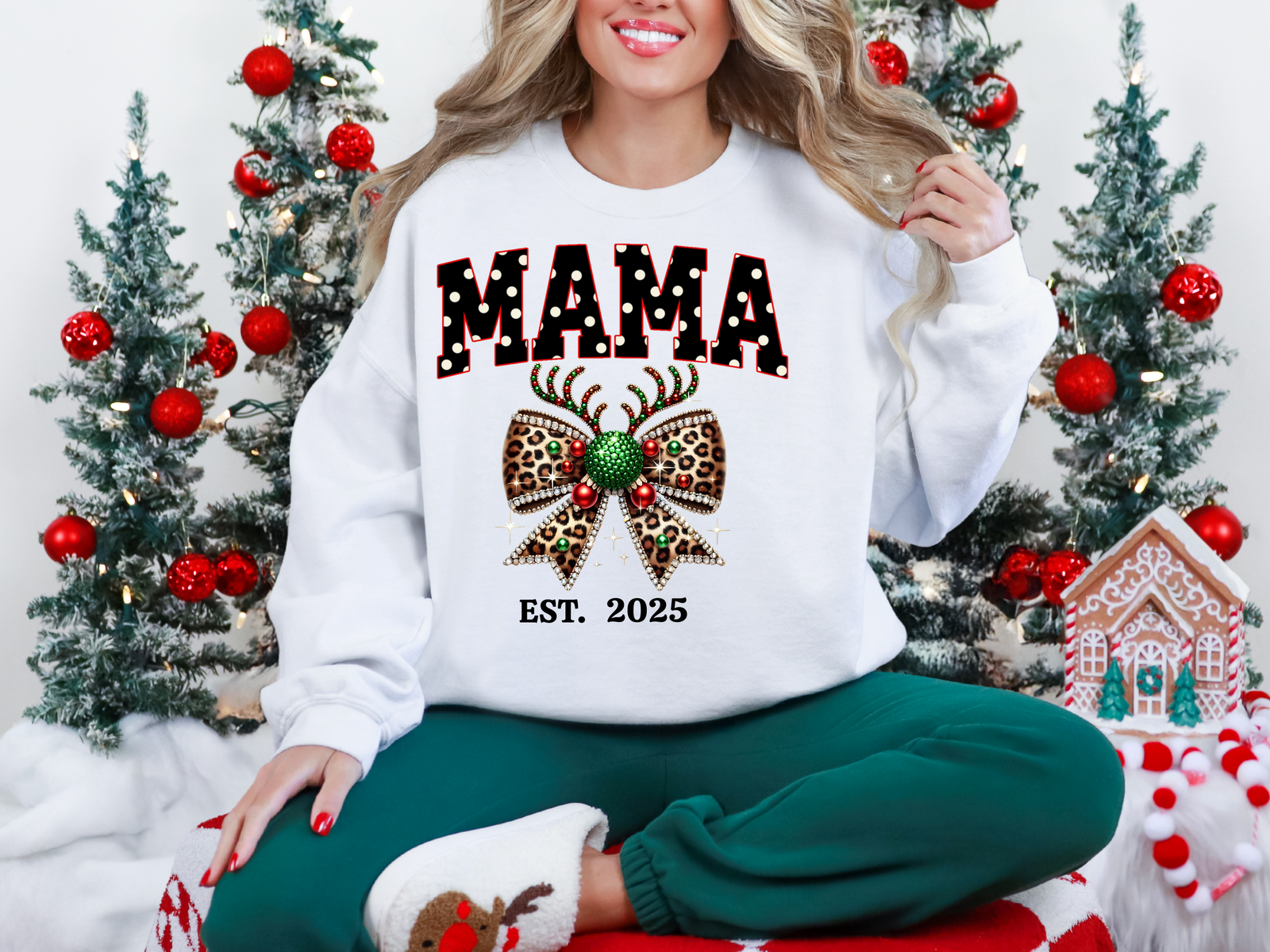 Bring holiday cheer everywhere you go with this Mama Christmas Sweatshirt featuring a festive bow design. Perfect for holiday gatherings, Christmas shopping, or cozy nights by the fire, this crewneck offers both warmth and style. Its soft, comfortable fabric and relaxed unisex fit make it an easy go-to for the season. A thoughtful and festive gift for moms who love celebrating Christmas in comfort and style.