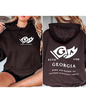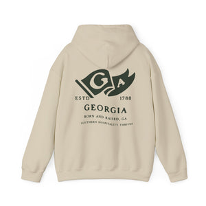 Georgia State Born and Raised Unisex Hoodie - Peach State Pride Design