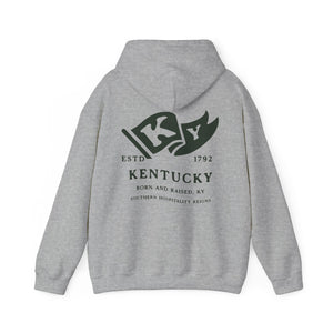 Celebrate your Kentucky roots with our "Born and Raised" Unisex Hoodie! This cozy and stylish hoodie is perfect for anyone who proudly calls the Bluegrass State home. The front features a bold "Born and Raised" slogan, while the back showcases a detailed Kentucky state outline with a heart marking your hometown pride. Made from premium, soft fabric, this unisex hoodie is ideal for cool evenings, outdoor adventures, or simply showing off your Kentucky pride. Whether you're a lifelong resident or a proud supporter of the Horse Capital of the World, this hoodie is a must-have addition to your wardrobe