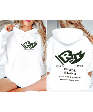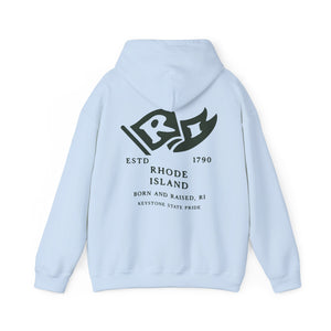 Rhode Island State Born and Raised Unisex Hoodie - Ocean State Pride Design