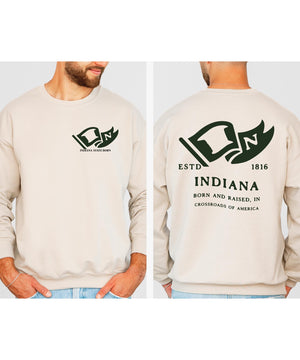 Indiana State Born and Raised Sweatshirt - Hoosier State Pride Design