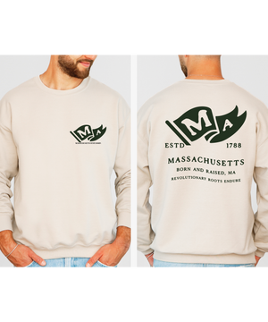 Celebrate your Massachusetts roots with our "Born and Raised" Sweatshirt! This cozy and stylish sweatshirt is perfect for anyone who proudly calls the Bay State home. The front features a bold "Born and Raised" slogan, while the back showcases a detailed Massachusetts state outline with a heart marking your hometown pride. Made from premium, soft fabric, this sweatshirt is ideal for crisp fall days, outdoor adventures, or simply showing off your Massachusetts pride. Whether you're a lifelong resident or a proud supporter of the Commonwealth, this sweatshirt is a must-have addition to your wardrobe