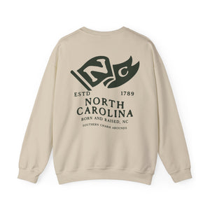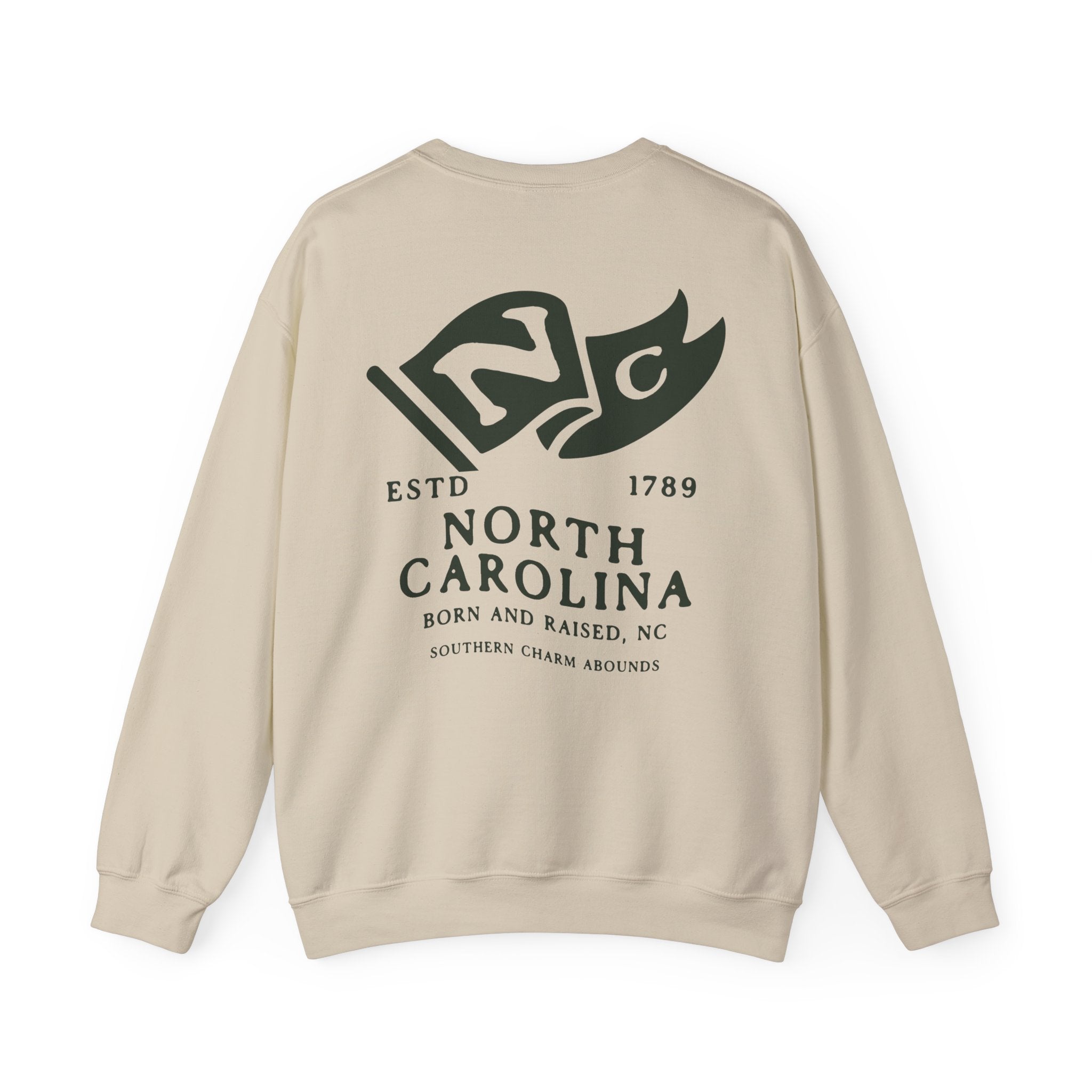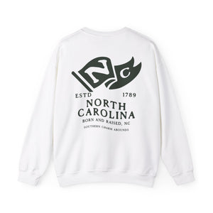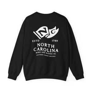 Show off your North Carolina pride with our "Born and Raised" Sweatshirt! This cozy, stylish sweatshirt is perfect for anyone who calls the Tar Heel State home. Featuring a bold "Born and Raised" slogan on the front, this sweatshirt also showcases a unique North Carolina state outline design on the back, complete with a heart marking your hometown pride. Made from soft, high-quality fabric, it's ideal for chilly days, game nights, or just lounging in comfort. Whether you're a lifelong resident or a proud transplant, this sweatshirt is a must-have for your wardrobe