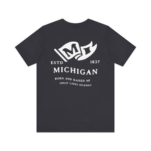 "Freshwater Roots, Michigan Strong." Show your Michigan pride with this Born & Raised T-shirt, featuring a bold front and back design that celebrates the beauty and resilience of the Great Lakes State. Whether you're exploring the Upper Peninsula, cruising down Woodward Avenue, or enjoying a day on the lake, this ultra-soft, breathable tee lets you represent Michigan in style. A must-have for proud Michiganders and a great gift for anyone who calls Michigan home