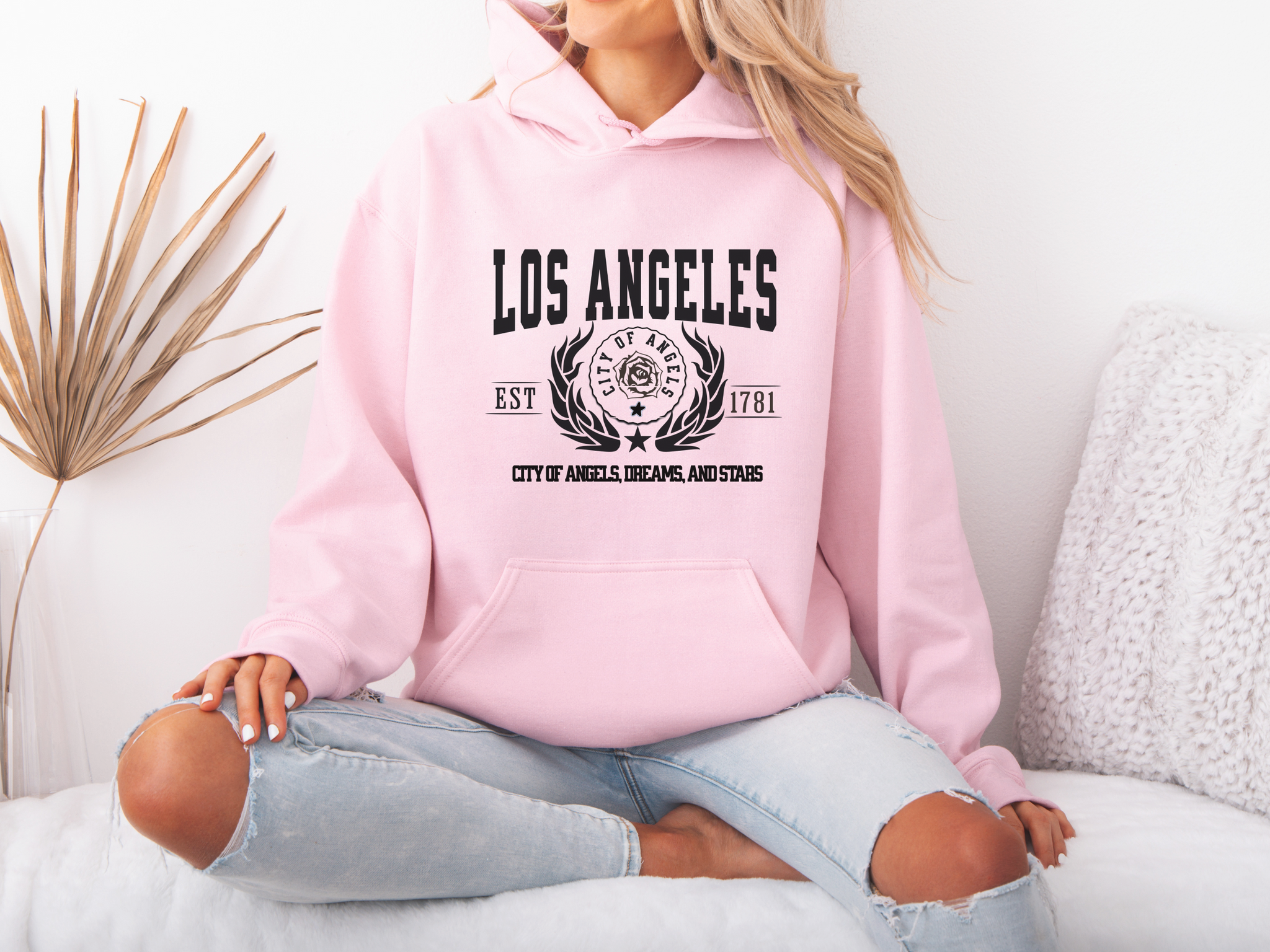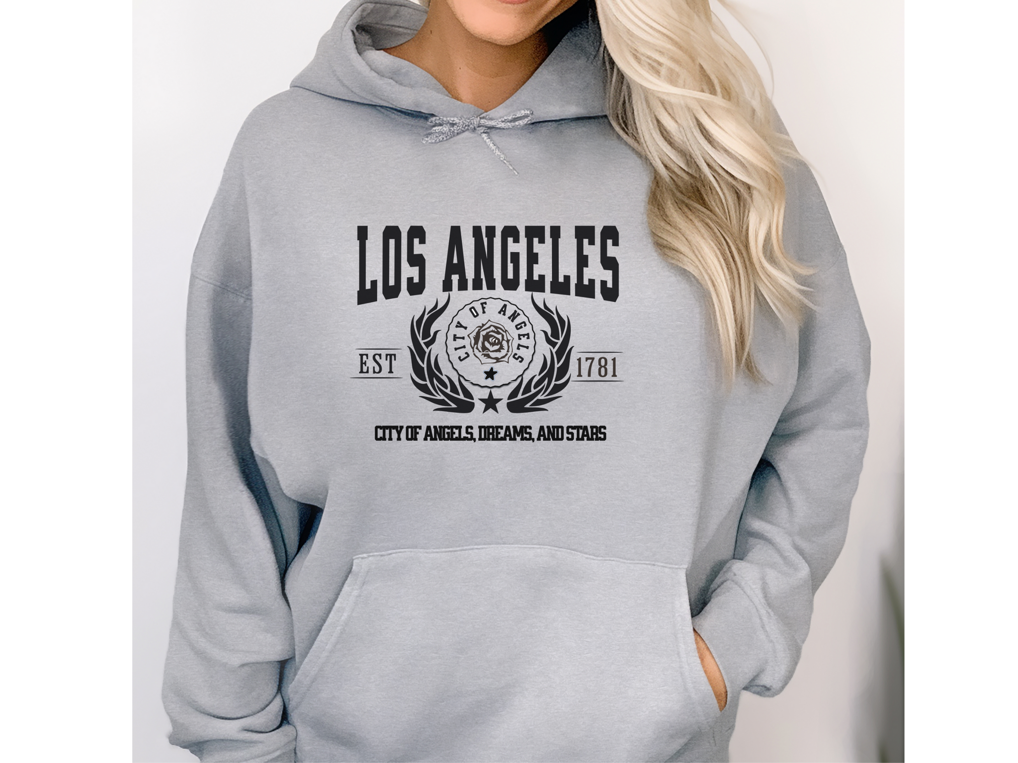 Embrace the magic of Los Angeles with our Legacy Unisex Hoodie, featuring the iconic slogan: "City of Angels, Dreams, and Stars." Known for its bright lights, star-studded streets, and endless possibilities, LA is where dreams come alive. Whether you're a proud local or an admirer of this vibrant city, this cozy hoodie is the perfect way to represent Los Angeles' unique blend of glamour and ambition. Wear it to show your connection to the heart of California’s entertainment, culture, and innovation.y of progress.
