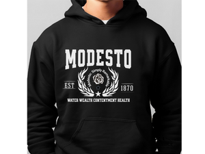 Modesto California Legacy Hoodie – "Water Wealth Contentment Health" Unisex Sweatshirt