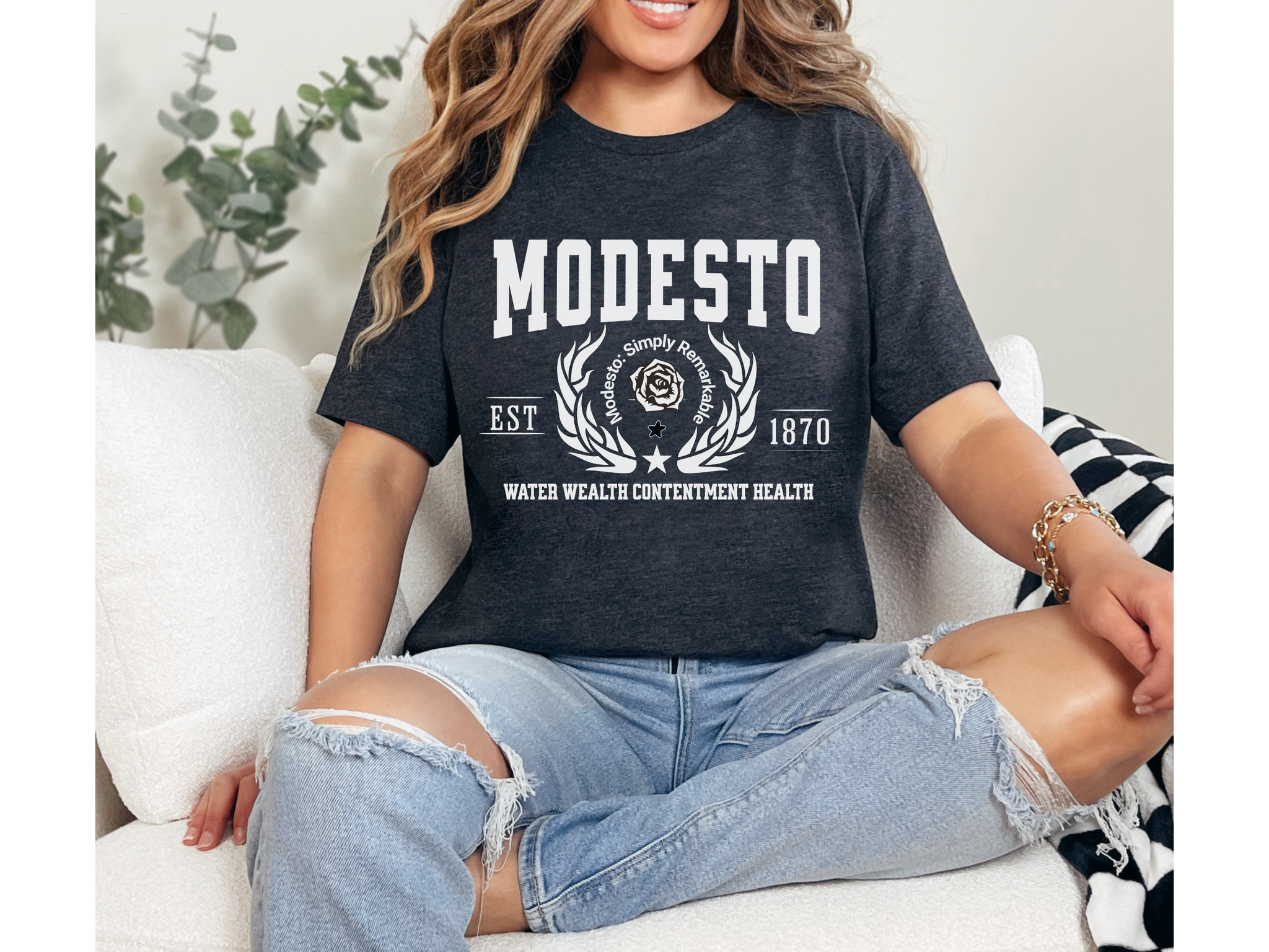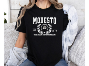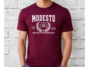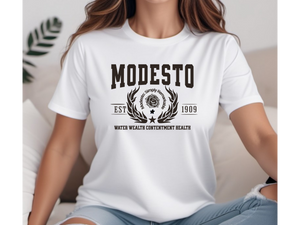 Designed with a soft cotton blend and a classic unisex fit, it’s perfect for everyday wear and makes a great gift for Modesto locals, past and present.
