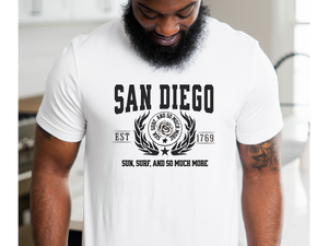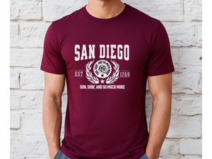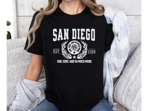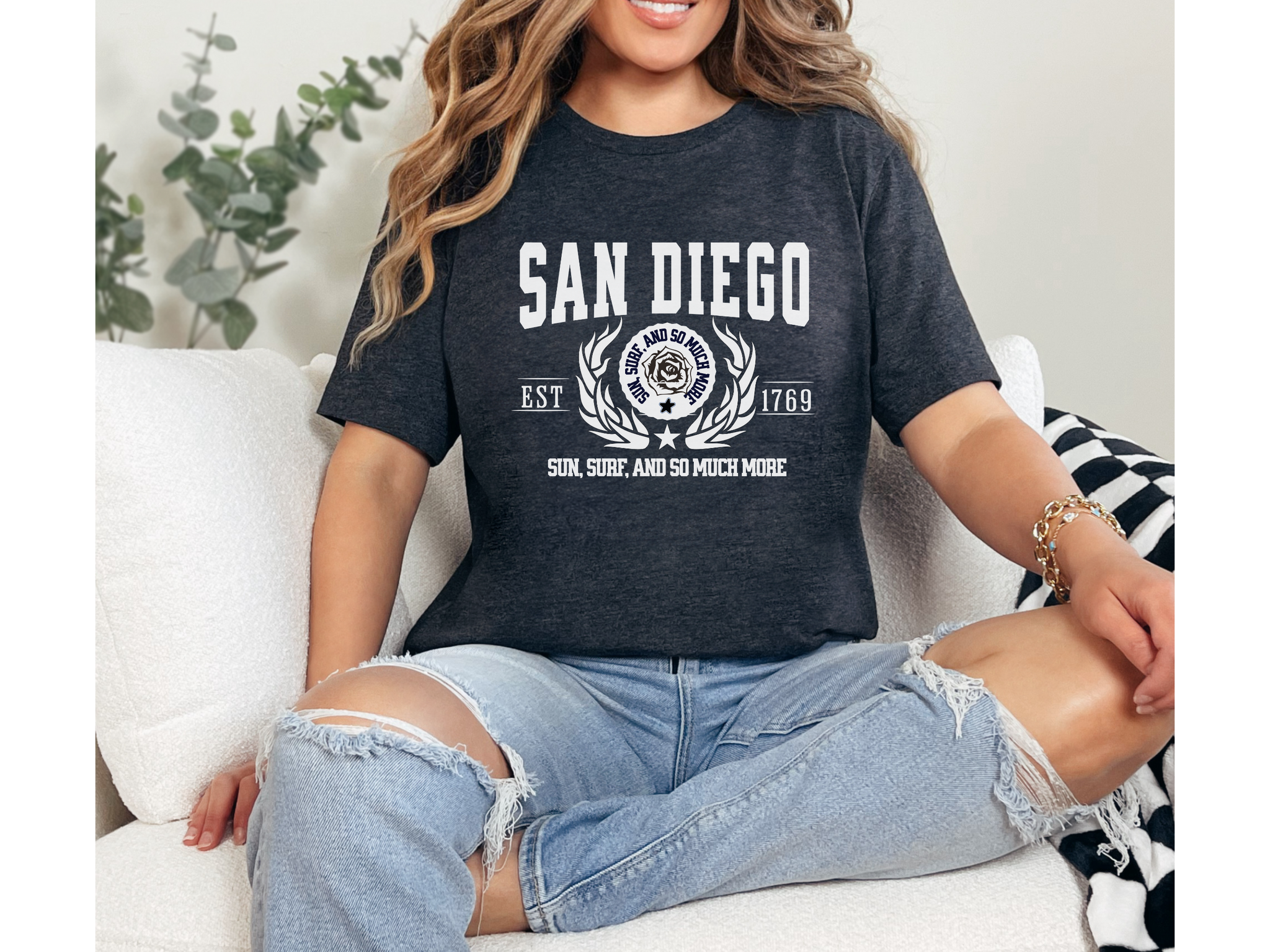 Known for its perfect weather, laid-back vibe, and endless coastline, San Diego is more than a destination—it’s a lifestyle. Whether you're soaking in the sun at La Jolla, strolling through Balboa Park, or cheering from Petco Park, this tee captures the golden essence of SoCal’s coastal gem.