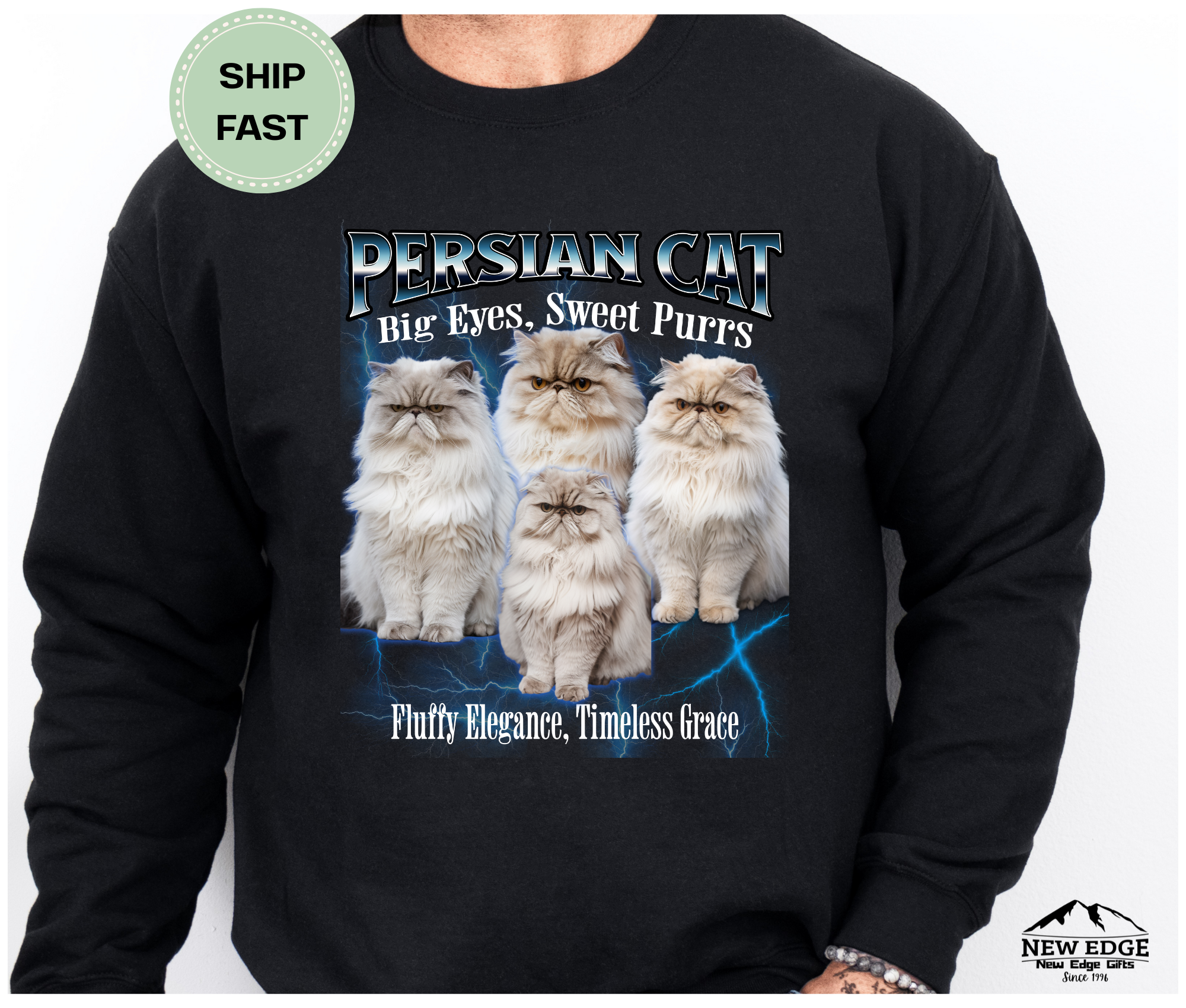 Persian Cat Unisex Sweatshirt – “Big Eyes, Sweet Purrs, Fluff Elegance, Timeless Grace” | Cozy Cat Lover Pullover | Persian Cat Gift | New Edge Gifts & Novelties