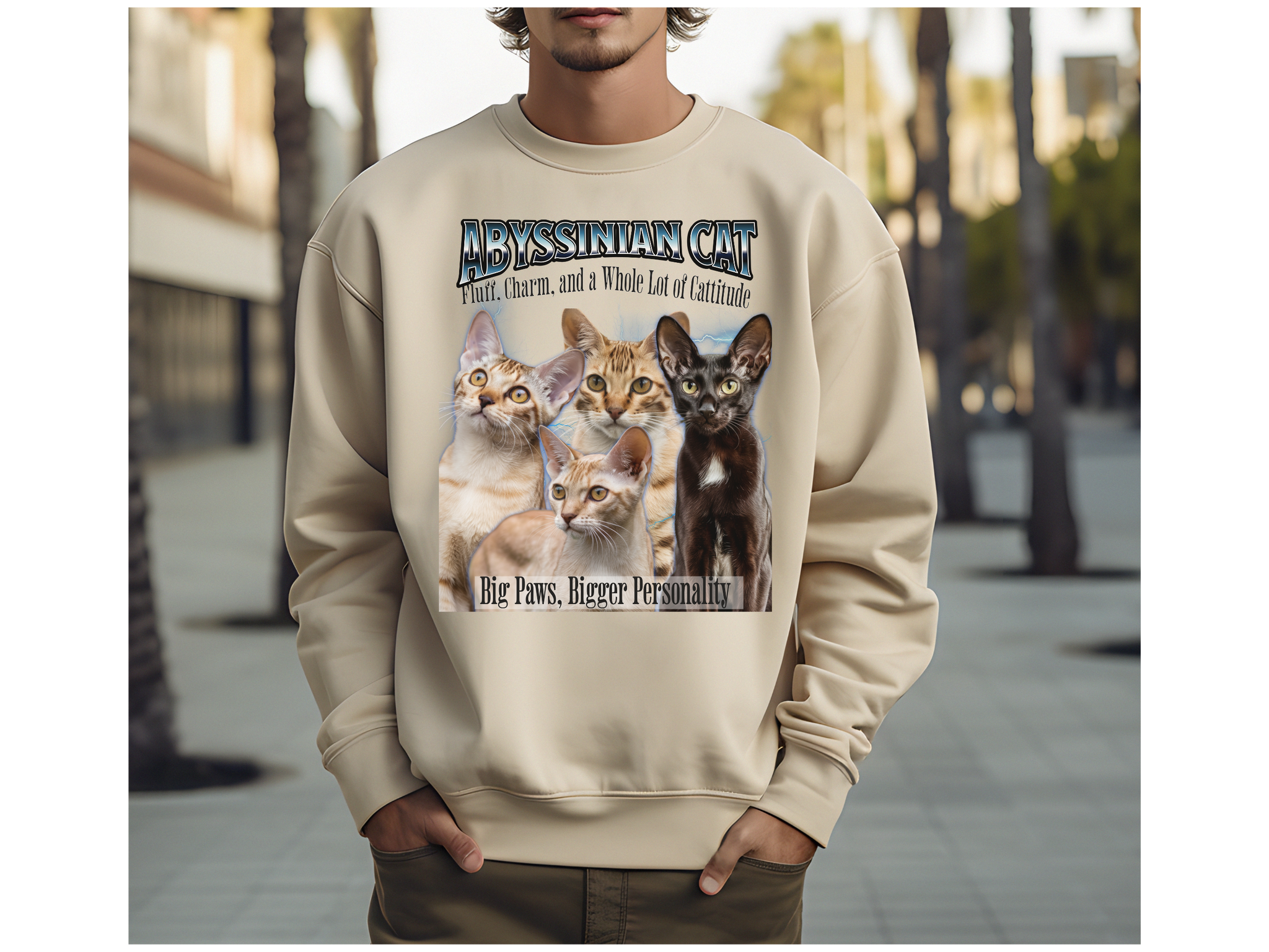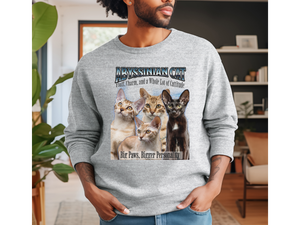 Unisex Abyssinian Cat Bootleg Collage Sweatshirt – “Fluff, Charm, and a Whole Lot of Cattitude” Retro Feline Streetwear