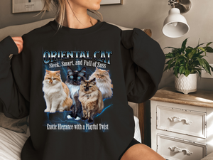 Turn heads with feline finesse in this Unisex Oriental Cat Bootleg Collage Sweatshirt. Featuring a bold vintage-inspired bootleg collage design, this sweatshirt celebrates the elegance and attitude of the sleek and stylish Oriental cat.