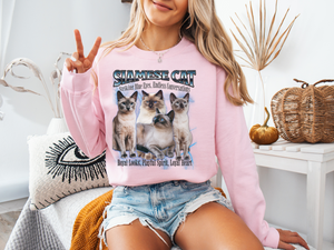 Made from a cozy cotton-poly blend with a fleece-lined interior, this unisex sweatshirt delivers warmth and comfort while speaking volumes—just like a Siamese.