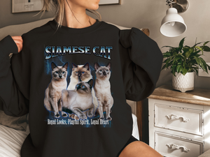 Show off your love for the most vocal and elegant of felines with this Unisex Siamese Cat Bootleg Collage Sweatshirt. Featuring a bold, vintage-style collage of the iconic Siamese cat, this sweatshirt captures their signature sleek look, dazzling blue eyes, and chatty personality.