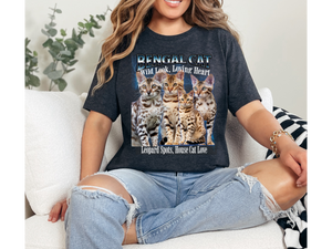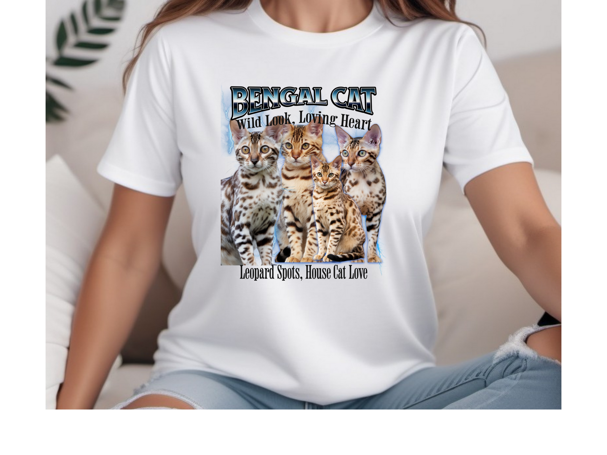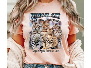 Bring fierce style and feline flair to your wardrobe with this Unisex Bengal Cat Bootleg Collage T-Shirt. Designed with bold bootleg-inspired graphics, this shirt showcases the striking beauty and wild charm of the Bengal cat in a throwback collage style that screams retro cool.