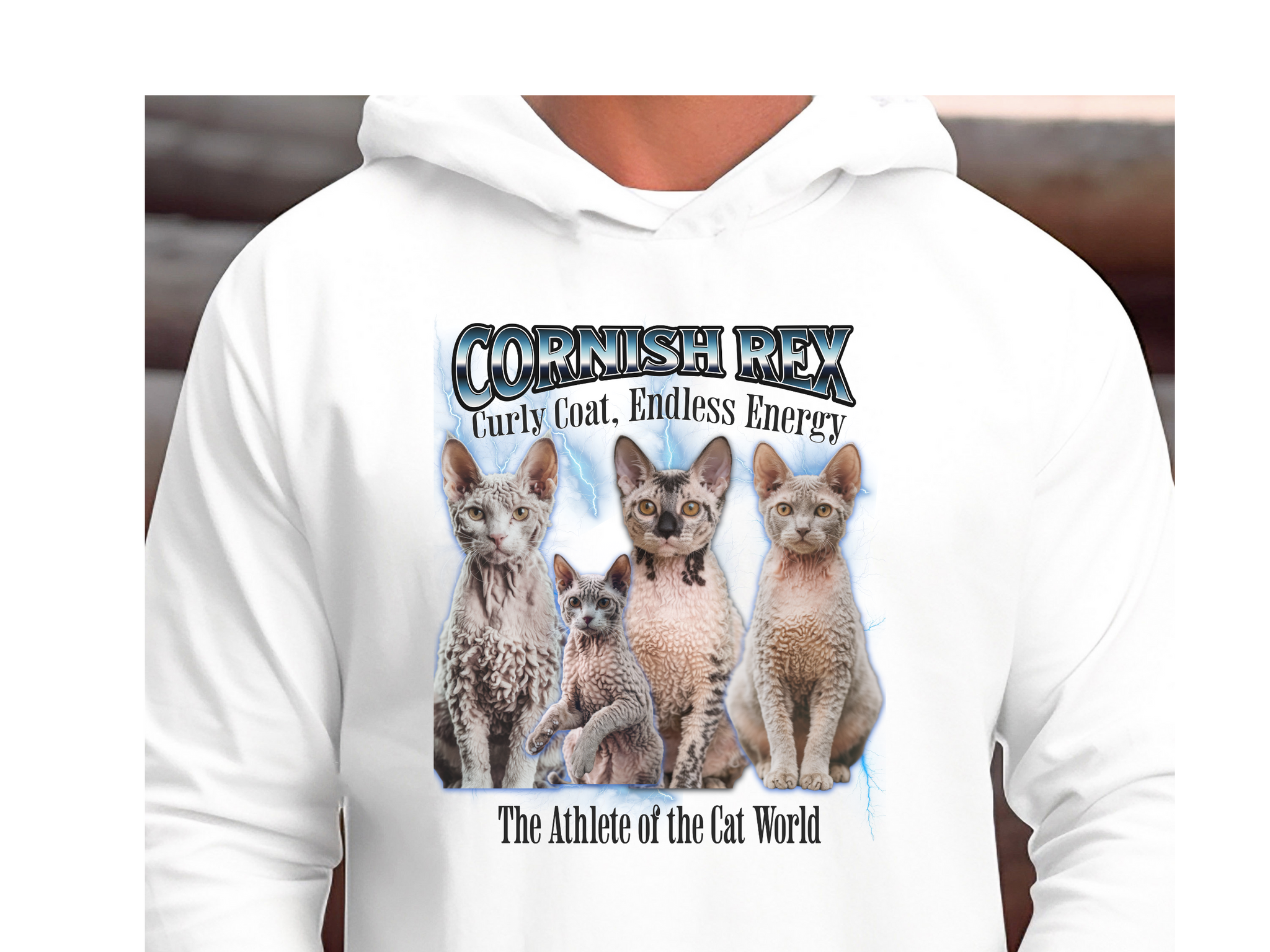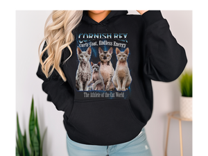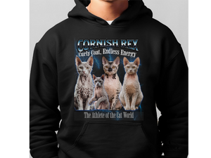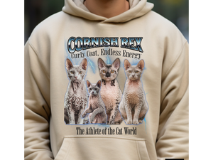 Cornish Rex Cat Hoodie – Unisex Bootleg Collage Sweatshirt | The Athlete of the Cat World