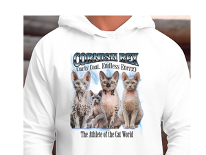 Crafted for all-day comfort with soft fabric and a relaxed unisex fit, this hoodie blends active energy with laid-back fashion. Whether you're a Cornish Rex cat parent or just appreciate feline finesse, this piece adds personality and movement to your wardrobe.