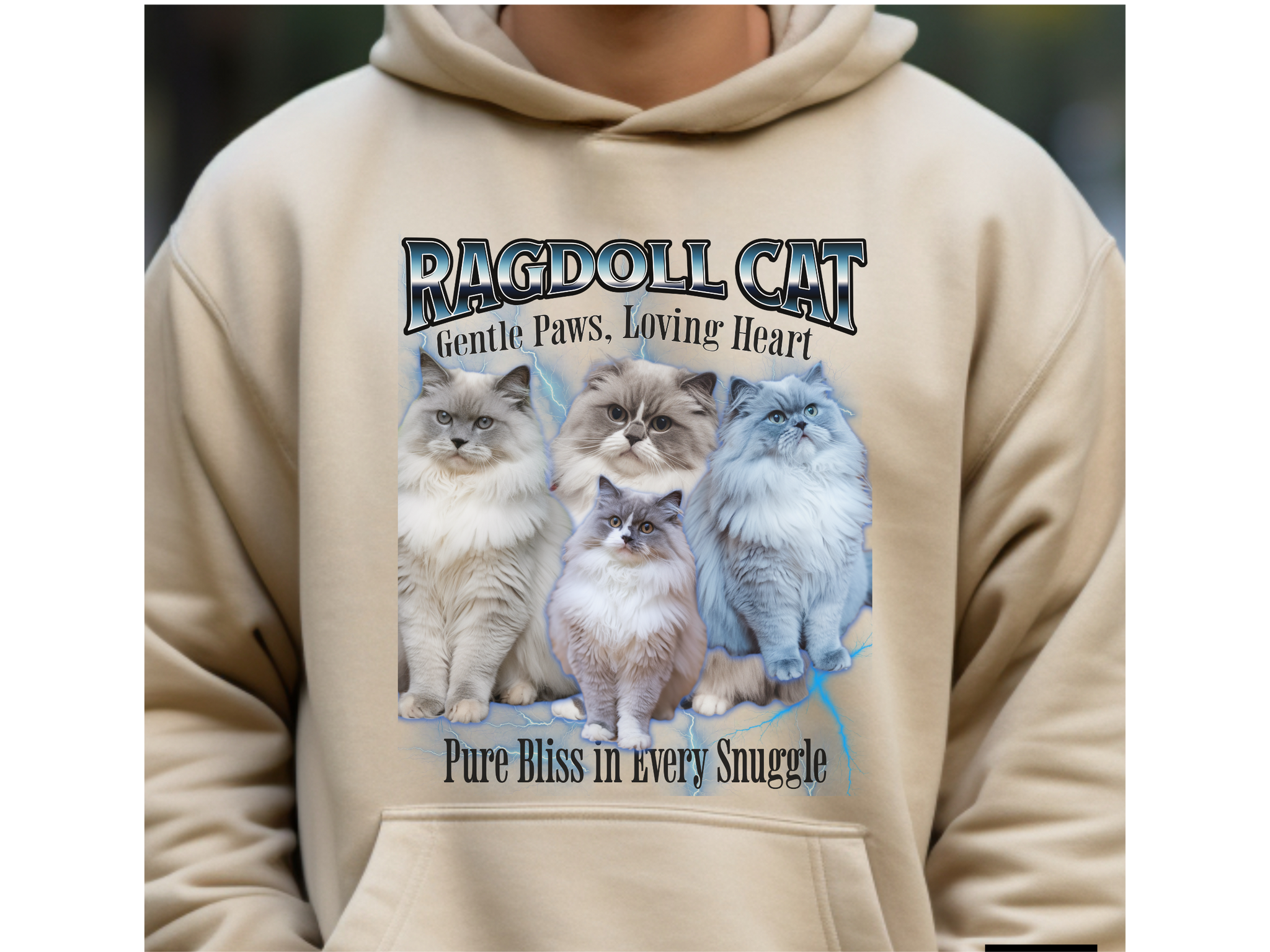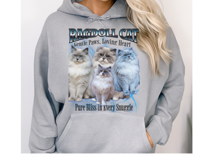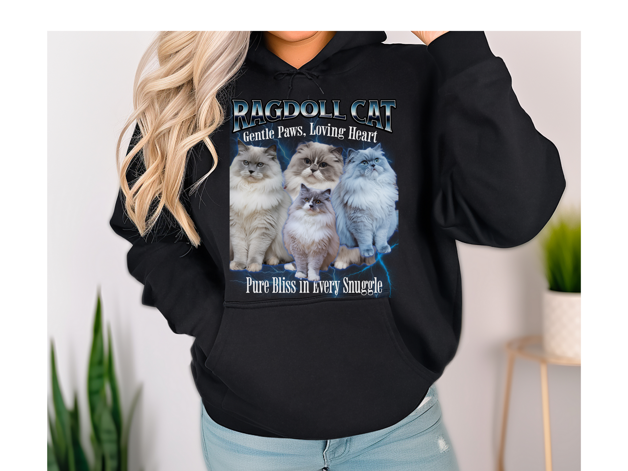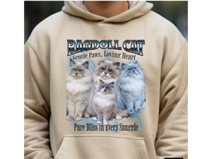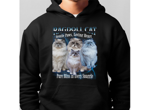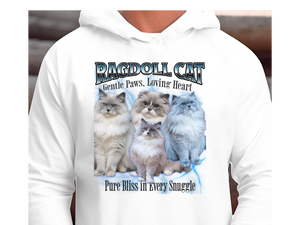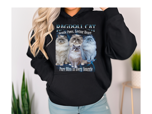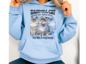 Wrap yourself in cozy style and feline elegance with this Unisex Persian Blue Cat Bootleg Collage Hoodie. Featuring a dreamy, vintage-inspired collage graphic of the serene and majestic Persian Blue cat, this hoodie captures the calm grace and unwavering loyalty of one of the most adored cat breeds.