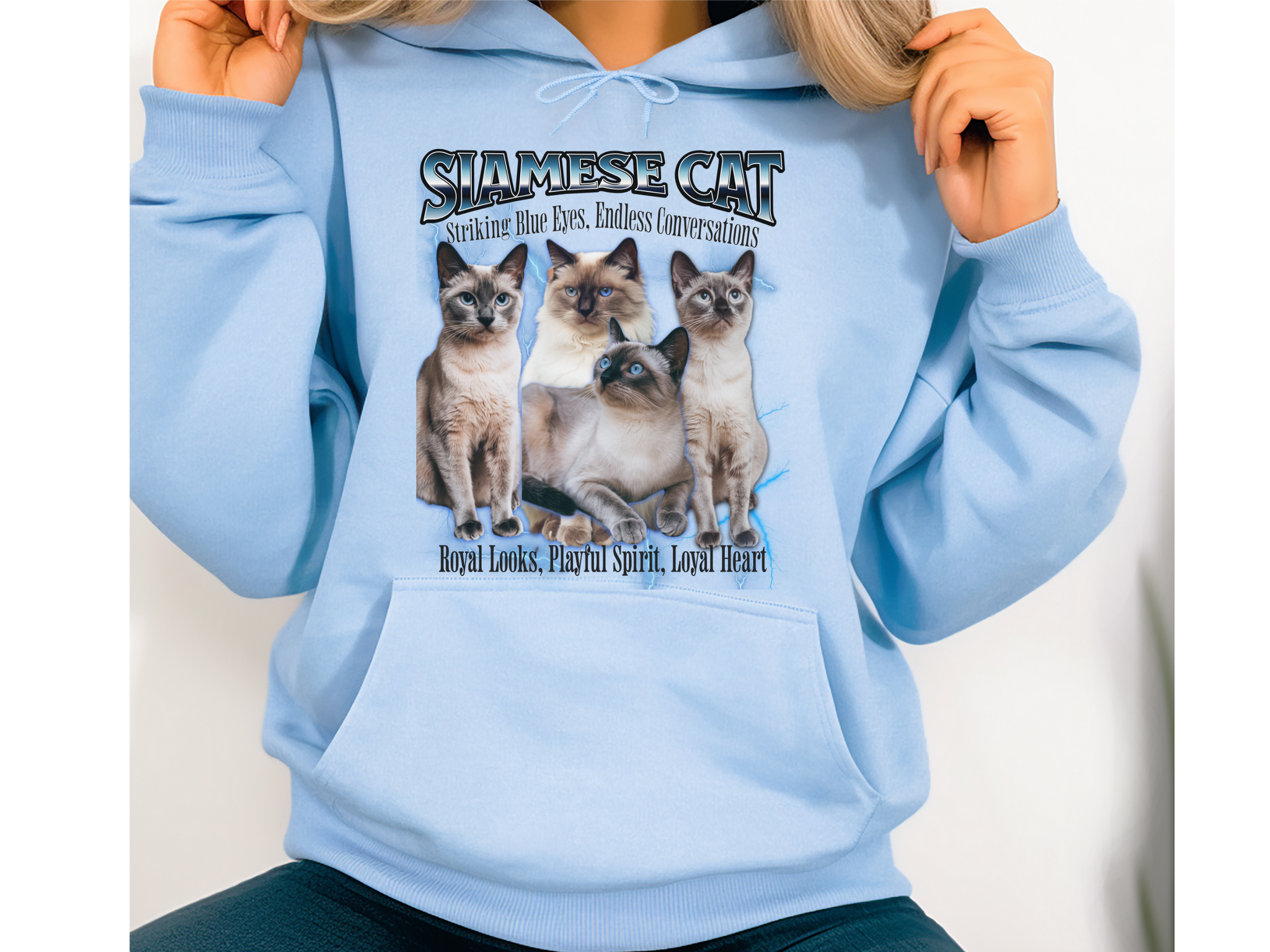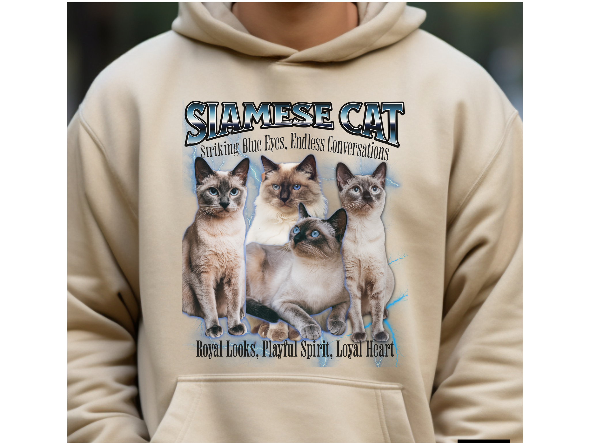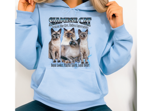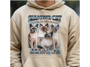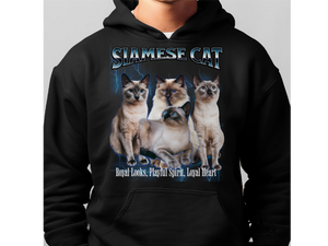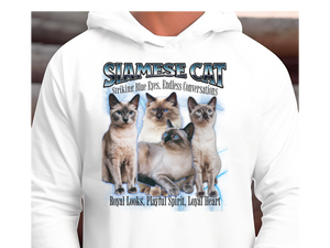 Turn heads and spark conversations with this Unisex Siamese Cat Bootleg Collage Hoodie. Featuring a bold and nostalgic bootleg-style graphic, this hoodie is a tribute to the elegant and vocal Siamese cat, known for its piercing blue eyes and chatty personality.