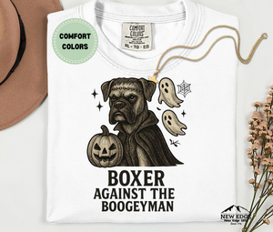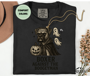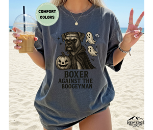 Face the fright in style with our Boxer – Against The Boogieman Halloween T-Shirt! This custom Comfort Colors tee features a playful Halloween pun that reimagines the loyal Boxer dog bravely taking on the spookiest season of the year. Perfect for dog lovers, Boxer parents, and Halloween enthusiasts, this unique design blends humor, canine charm, and spooky fun into one must-have shirt.