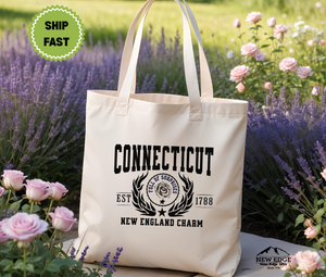 Connecticut State Cotton Canvas Tote Bag, “New England Charm”, USA States Souvenir, Connecticut Pride Gift, Eco Travel Tote