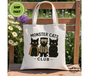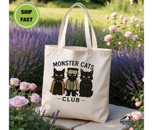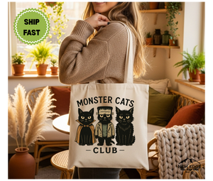 Join the Monster Cats Club with this bold and spooky-cool Halloween Tote Bag featuring three gangster-style cats ready to rule the night! Made from durable 100% cotton canvas, this reusable tote is perfect for carrying daily essentials, Halloween treats, or cat-lover gifts. A fun and unique accessory for anyone who loves felines, street style, and a little spooky attitude this Halloween