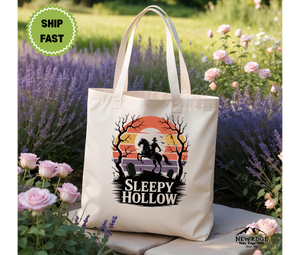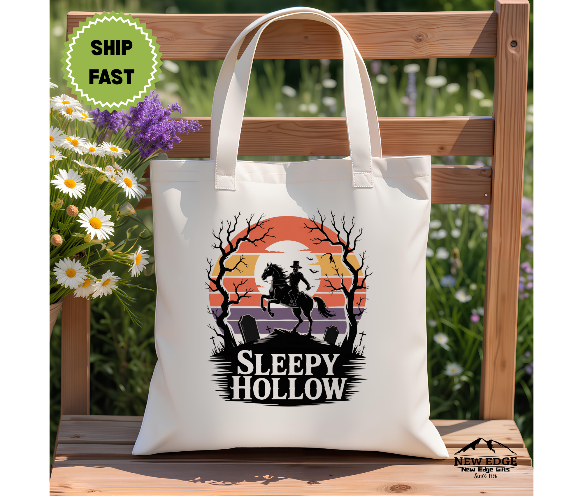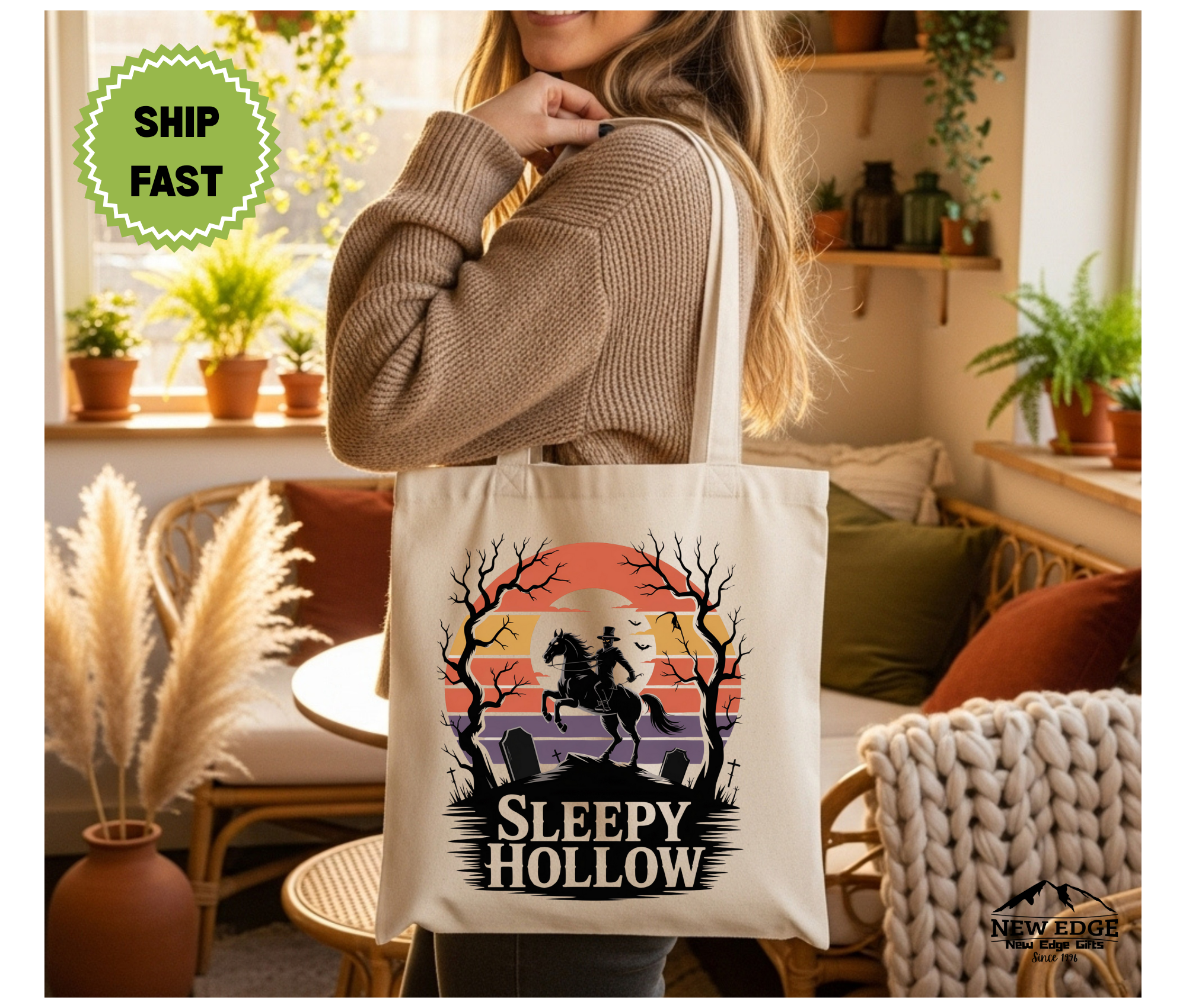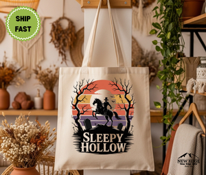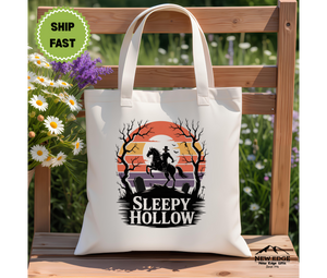 Sleepy Hollow Halloween Tote Bag – Gothic Cotton Canvas Bag, Spooky Headless Horseman Gift, Classic Horror Fall Aesthetic Tote