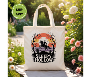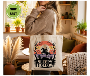 Bring haunting legends to life with this “Sleepy Hollow” Halloween Tote Bag! Made from durable 100% cotton canvas, this reusable tote captures eerie fall vibes inspired by the classic tale of the Headless Horseman. Perfect for Halloween outings, book lovers of gothic fiction, or anyone who adores spooky, vintage-style accessories. A must-have for fans of dark folklore and autumn magic.