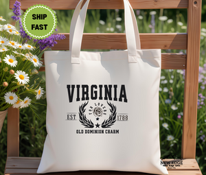 Virginia State Old Dominion Charm Cotton Canvas Tote Bag – Eco-Friendly Reusable Shopping Tote, Travel Gift & Historic State Souvenir