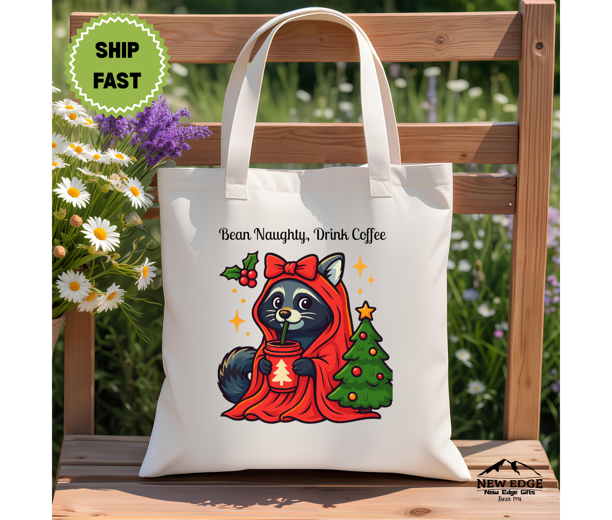 $15.80 USDBean Naughty Drink Coffee Christmas Tote Bag – Funny Raccoon Cotton Canvas Bag, Holiday Coffee Lover Gift, Cute Animal Xmas Shopper Bag
