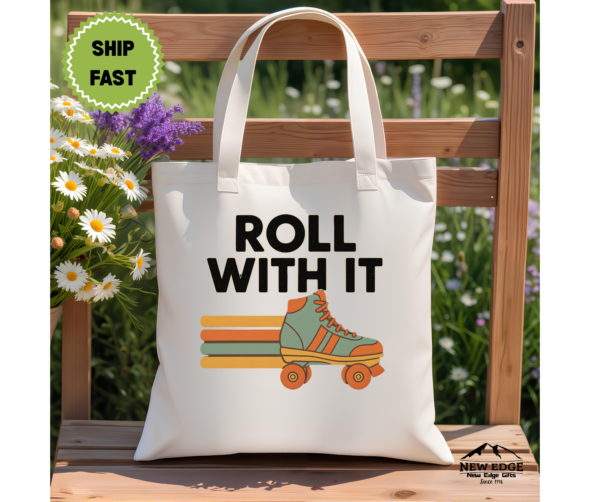 $15.80 USDRoll With It 70’s Retro Roller Skating Tote Bag – Vintage Cotton Canvas Bag, Groovy Skater Gift, Retro Aesthetic Reusable Shopper
