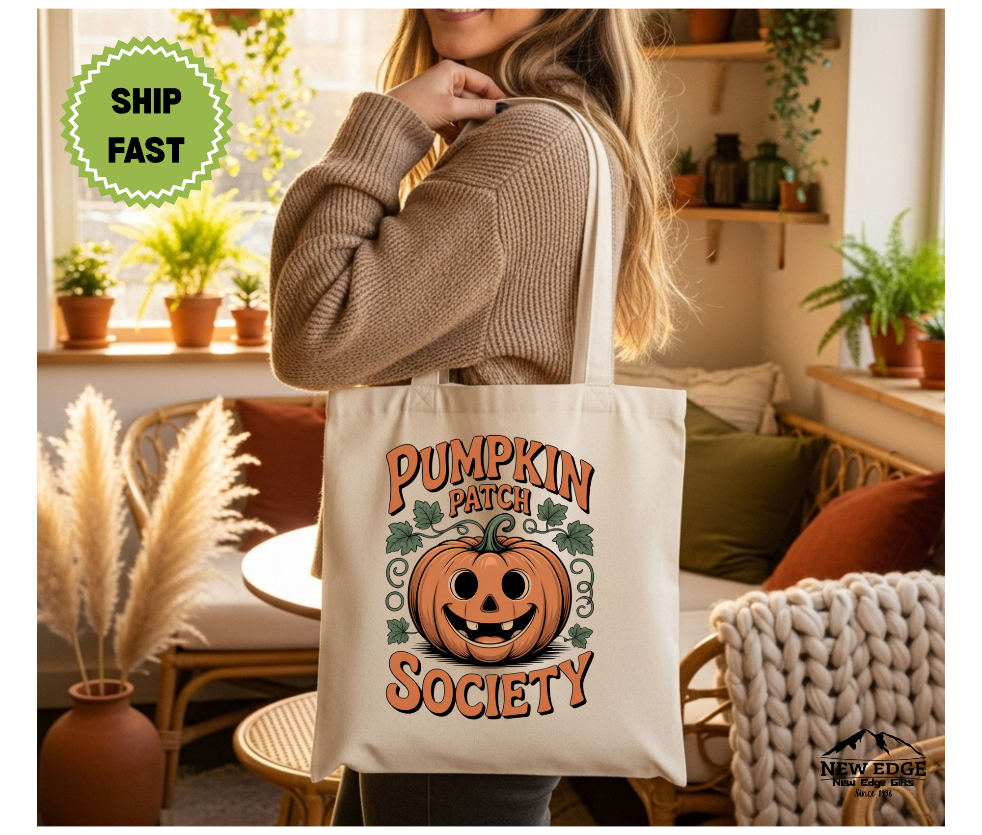 $15.80 USDPumpkin Patch Society Halloween Tote Bag – Fall Cotton Canvas Bag, Autumn Harvest Gift, Cozy Pumpkin Lover Tote for Spooky Season
