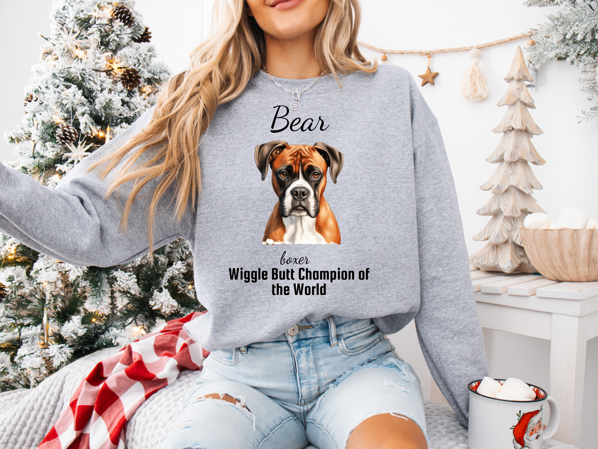 from $38.18 USDPersonalized Boxer Dog Sweatshirt – “Wiggle Butt Champion of the World” | Custom Unisex Christmas Gift, Funny Dog Lover Sweatshirt, Pet Gift for Him or Her