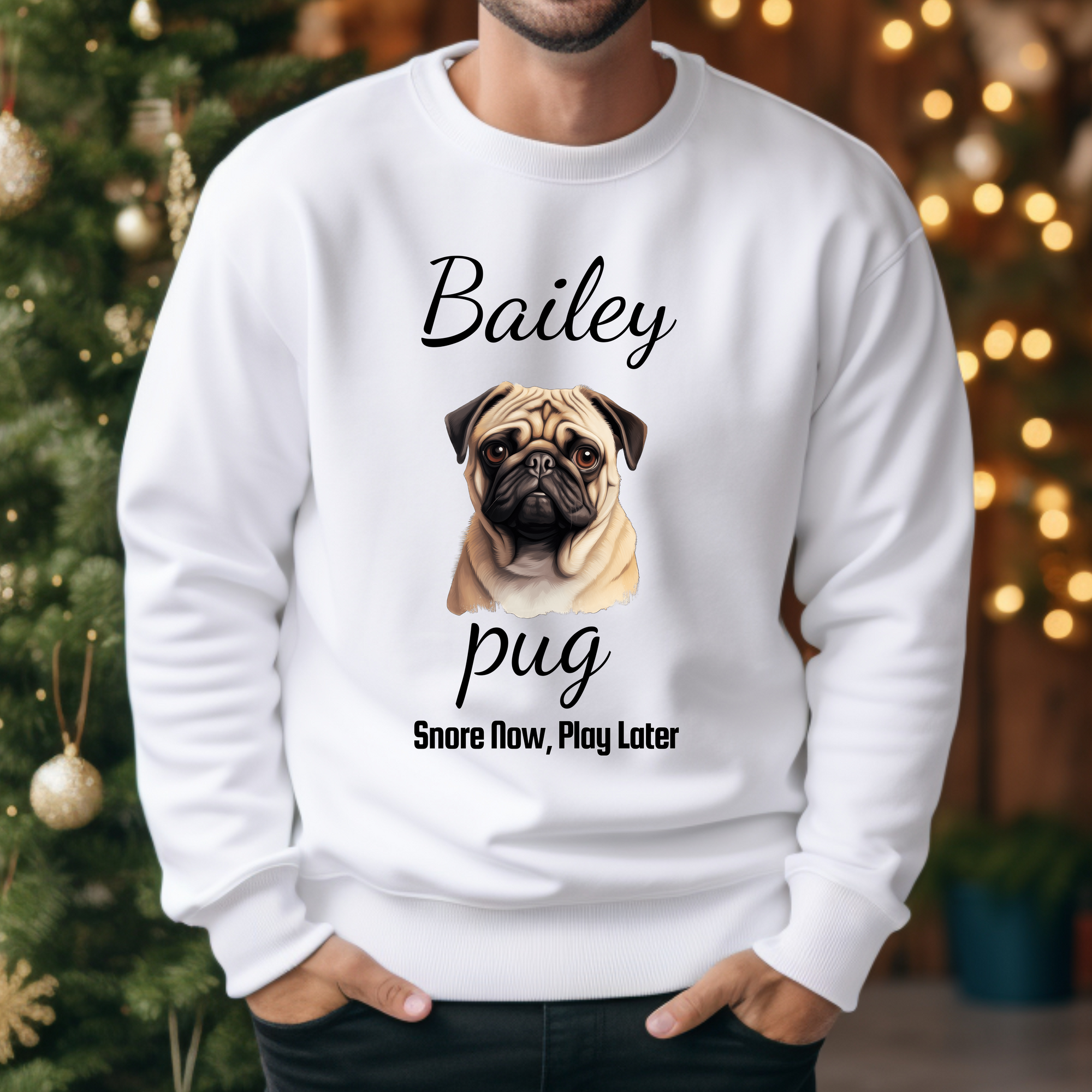 from $38.18 USDPersonalized Pug Dog Unisex Sweatshirt – “Snore Now, Play Later” | Funny Dog Mom Gift | Custom Dog Breed Sweater