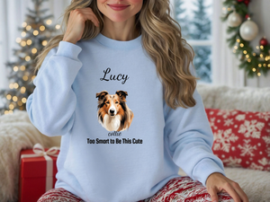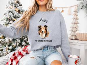 Collie “Too Smart to Be This Cute” Personalized Unisex Sweatshirt | Custom Dog Breed Gift for Dog Lovers