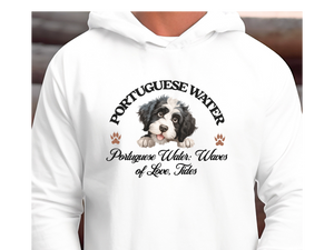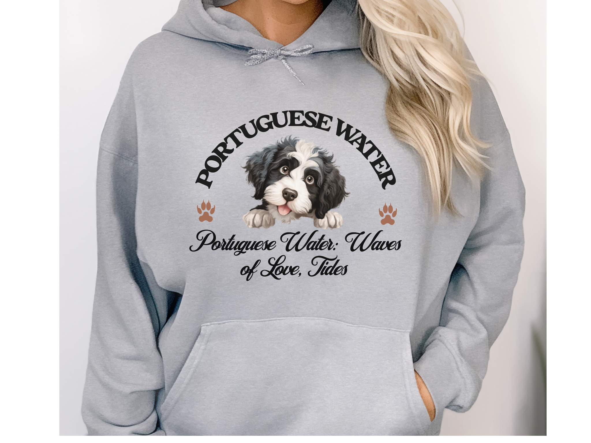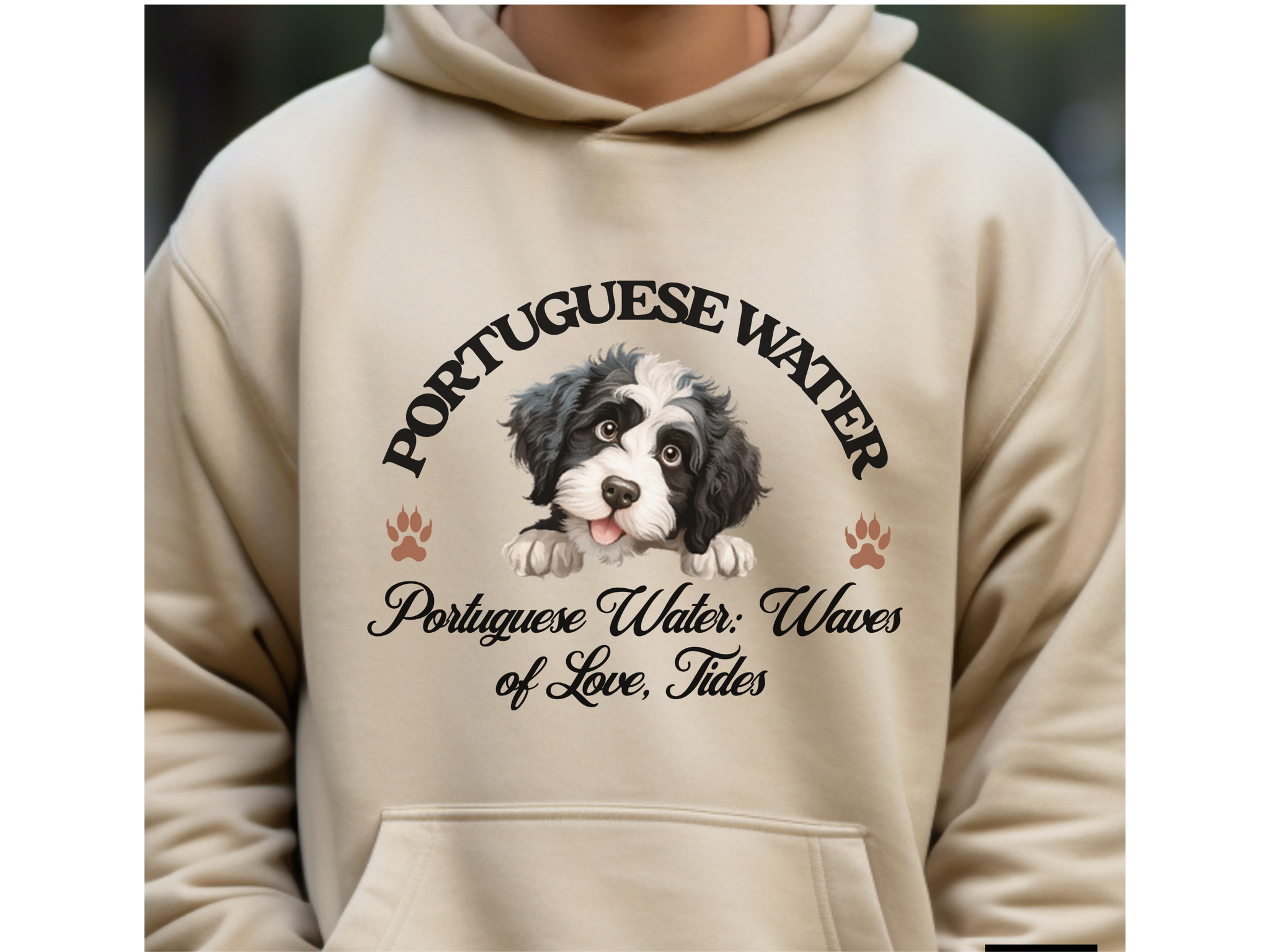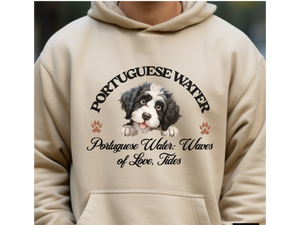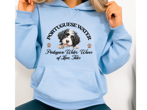 Celebrate the spirited and affectionate nature of your wave-loving companion with this charming Portuguese Water Dog Hoodie, featuring the slogan: “Portuguese Water – Waves of Love, Tides of Loyalty.” This unisex hoodie is perfect for pups who are always ready for adventure, affection, and making a splash wherever they go.