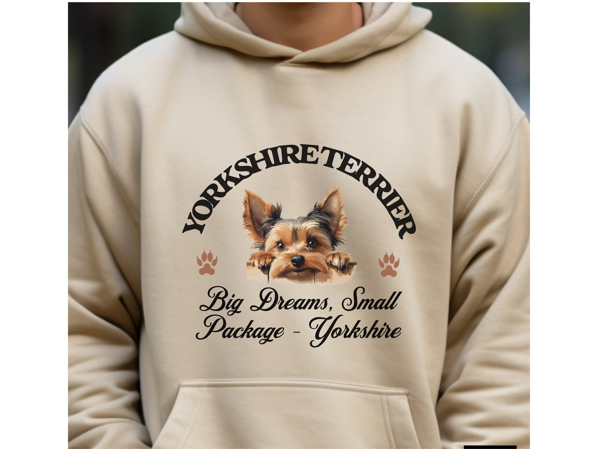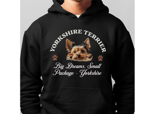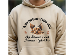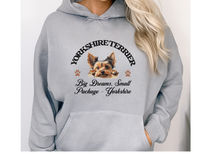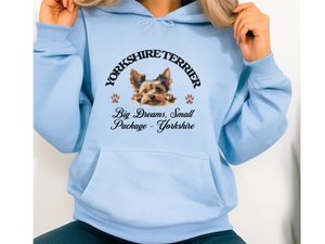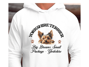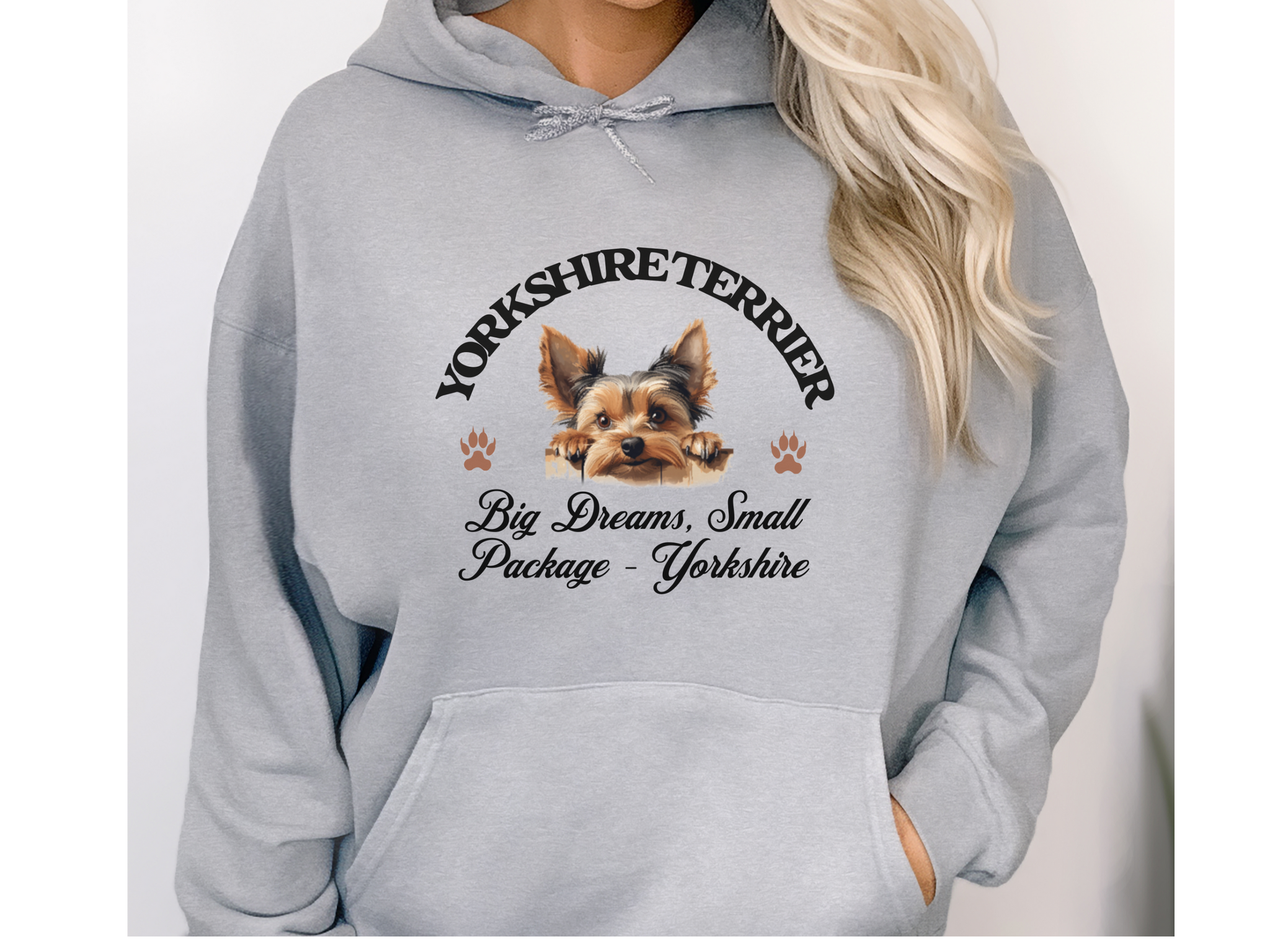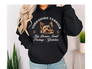 Yorkshire Terrier Dog Hoodie – "Big Dreams, Small Package – Yorkshire" | Cute & Cozy Unisex Pet Sweatshirt