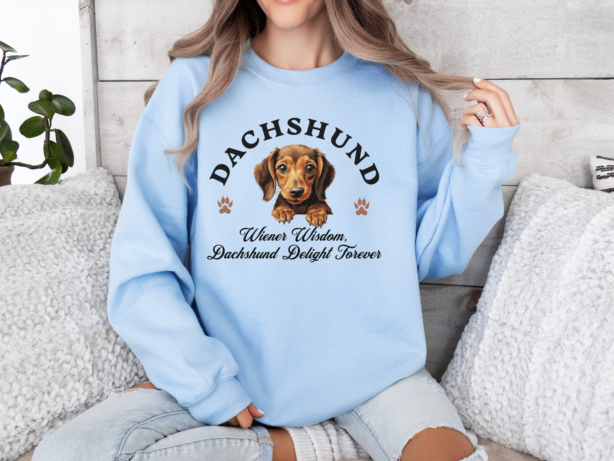 Long on charm and full of personality, the Dachshund is a small dog with a big heart. This cozy unisex sweatshirt proudly displays the playful and sweet slogan: “Wiener Wisdom, Dachshund Delight Forever.” Whether you’re a proud wiener dog parent or just love their unique style and spirit, this sweatshirt offers the perfect blend of comfort and dachshund devotion.