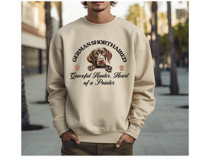 Celebrate the beauty, energy, and loyalty of the German Shorthaired Pointer with this cozy unisex sweatshirt. Featuring the proud slogan “Graceful Hunter, Heart of a Pointer,” this design pays tribute to the breed’s agility in the field and devotion at home. Whether you're an outdoors enthusiast or simply adore your GSP's boundless love, this sweatshirt brings both style and sentiment to your wardrobe.