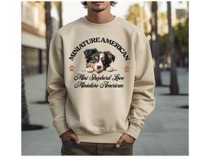 Show off your love for the playful and intelligent Miniature American Shepherd with this ultra-soft unisex sweatshirt! Featuring the heartfelt slogan “Mini Shepherd Love – Miniature American,” this cozy pullover celebrates all the energy, loyalty, and smarts packed into this pint-sized herding breed. Whether you're a proud Mini American parent or just adore their spirited nature, this sweatshirt is a stylish and meaningful way to represent your favorite pup.