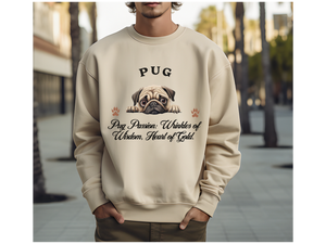 Pug Sweatshirt – Pug Passion: Wrinkles of Wisdom, Heart of Gold – Unisex Dog Lover Apparel