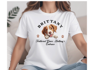 this tee honors the breed’s light-footed energy, gentle affection, and natural elegance. Whether you’re a bird dog enthusiast, a proud Brittany parent, or simply love refined sporting breeds, this shirt is the perfect blend of comfort and canine devotion.
