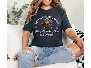 Celebrate the elegance and drive of one of the finest sporting breeds with this German Shorthaired Pointer T-Shirt! Featuring the bold and refined slogan: