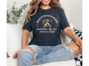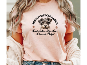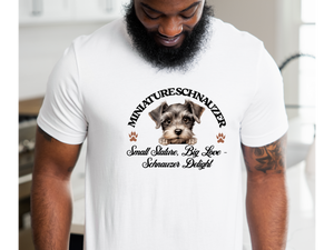 Big love comes in small, whiskered packages—just like the Miniature Schnauzer! This unisex T-shirt proudly features the heartwarming slogan: