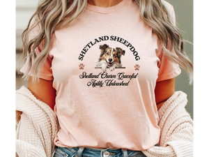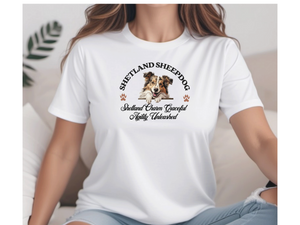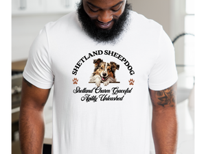Shetland Sheepdog T-Shirt – Unisex Tee with “Shetland Charm, Graceful Agility Unleashed” | Sheltie Lover Gift