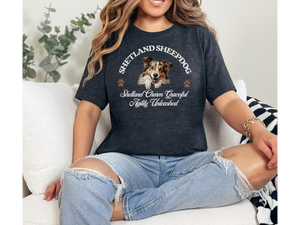 this tee honors the elegance, intelligence, and quick-footed spirit of the beloved Sheltie.