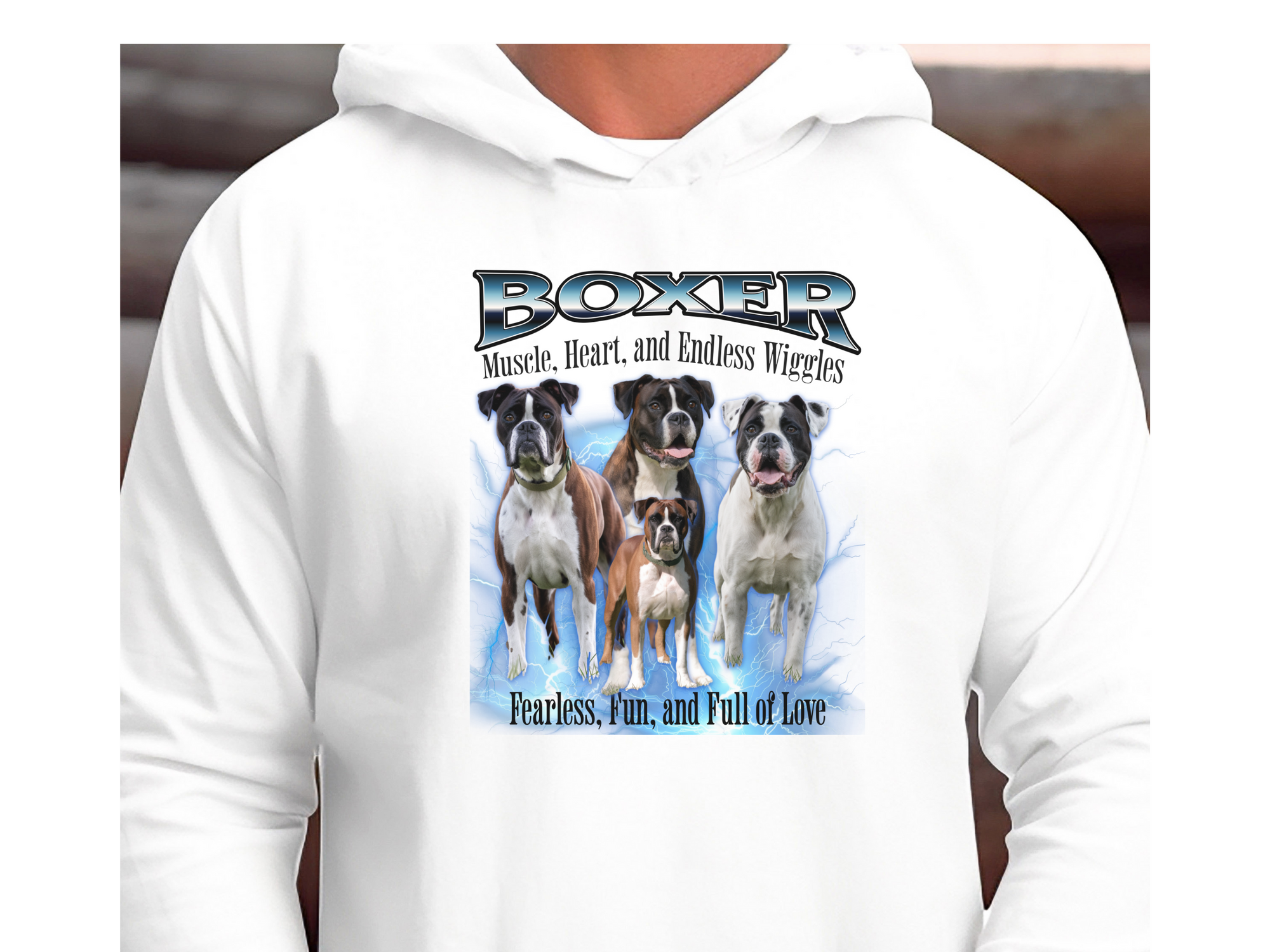 from $32.99 USDBoxer Bootleg Collage Hoodie – Muscle, Heart, and Endless Wiggles | Unisex Dog Lover Pullover