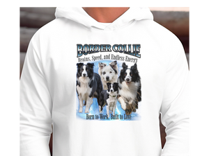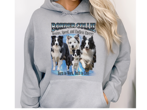 Crafted from a soft cotton-poly blend, this hoodie offers a relaxed unisex fit, ensuring comfort whether you're on a brisk walk or lounging at home. Whether you're a proud Border Collie parent or an admirer of their lively nature, this pullover is a stylish way to showcase your affection for the breed.