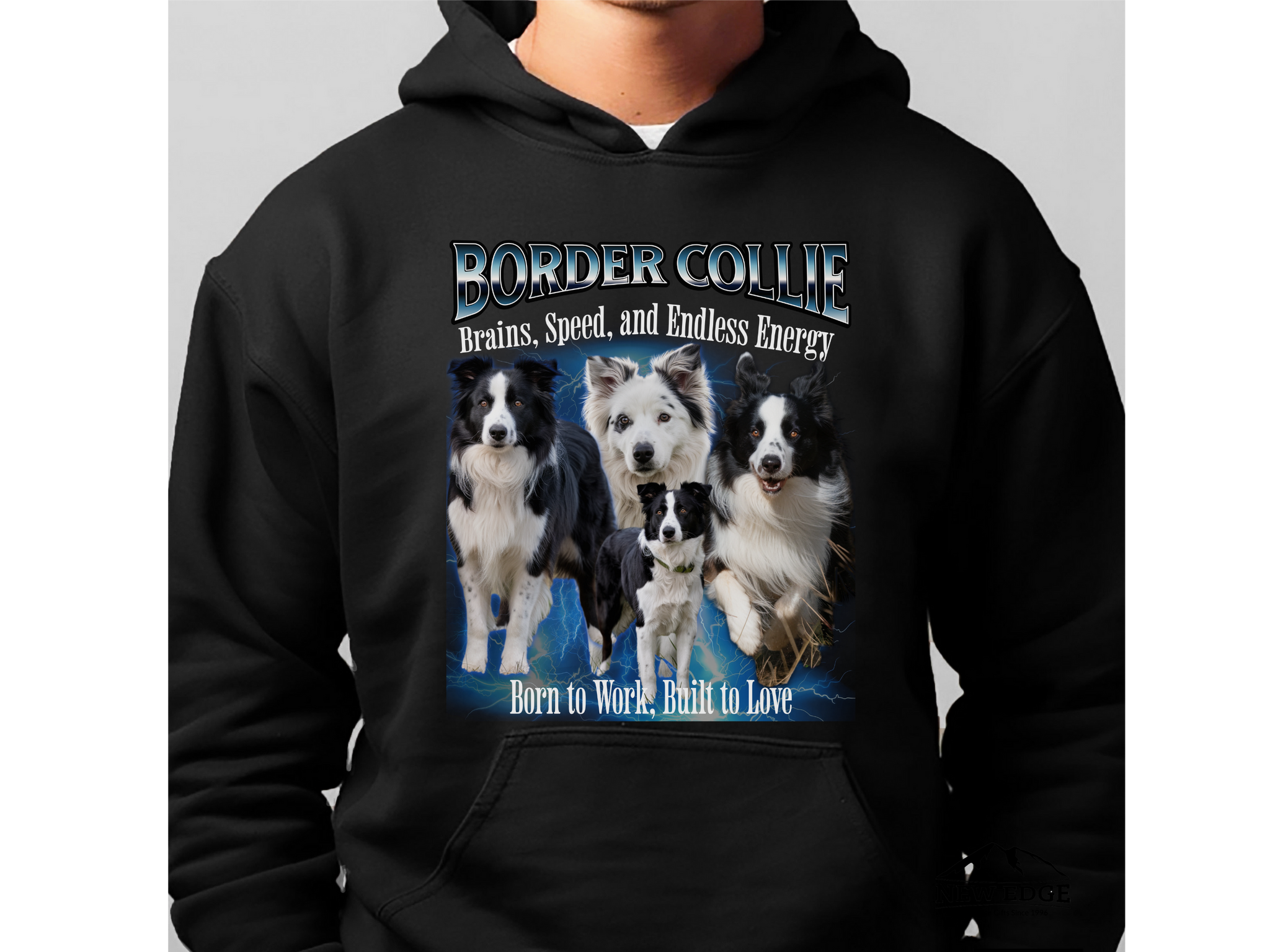 Celebrate the intelligence and vitality of the Border Collie with this Unisex Bootleg Collage Hoodie. Featuring a vintage-inspired design that captures the breed's sharp mind and boundless energy, this hoodie is a must-have for dog enthusiasts.