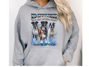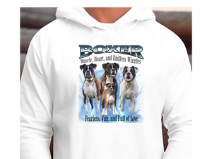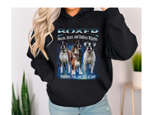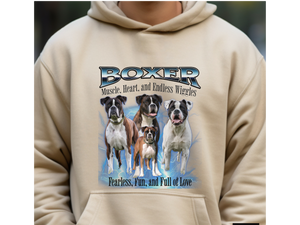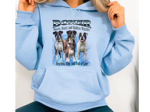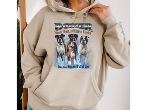 Crafted from a soft cotton-poly blend, this hoodie offers a relaxed unisex fit, ensuring comfort whether you're on a brisk walk or lounging at home. Whether you're a proud Boxer parent or an admirer of their lively nature, this pullover is a stylish way to showcase your affection for the breed.