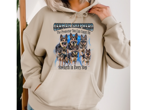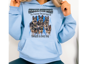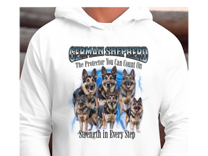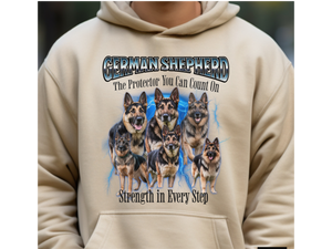 Crafted from a soft cotton-poly blend, this hoodie offers a relaxed unisex fit, ensuring comfort whether you're on a brisk walk or lounging at home. Whether you're a proud German Shepherd parent or an admirer of their courageous nature, this pullover is a stylish way to showcase your affection for the breed.